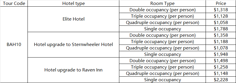 More travel hotel options! Guests can choose to pay a fee to upgrade to the Sternwheeler Hotel or Raven Inn for a better accommodation experience.