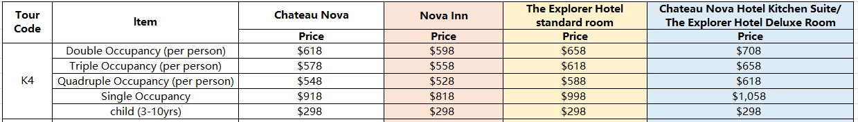 4. Child (0-9 years) and Single traveler going on the tour have special rates. These prices vary from one tour to another.