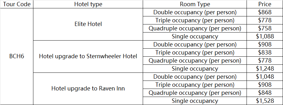 More travel hotel options! Guests can choose to pay a fee to upgrade to the Sternwheeler Hotel or Raven Inn for a better accommodation experience.